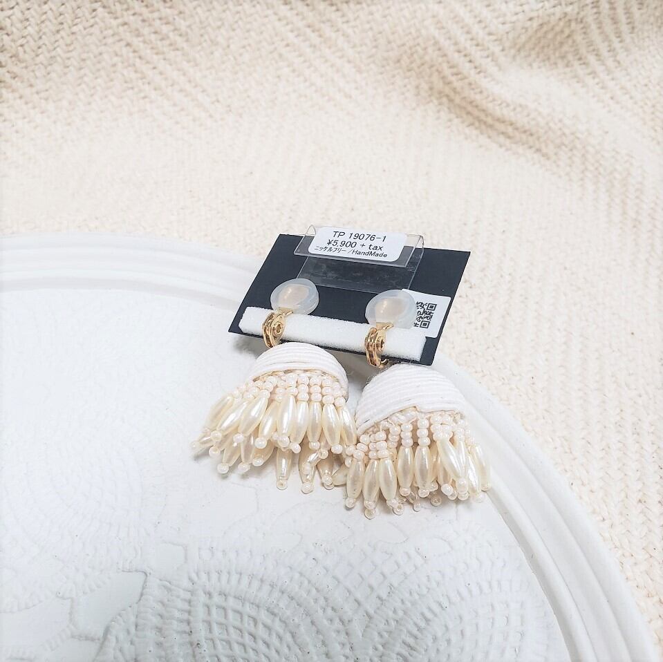 ベース:コットン・真鍮にコーティング(ニッケルフリー)・ゴム(イヤリングパーツ)/ ガラスビーズ・アクリルパール・ポリエステル